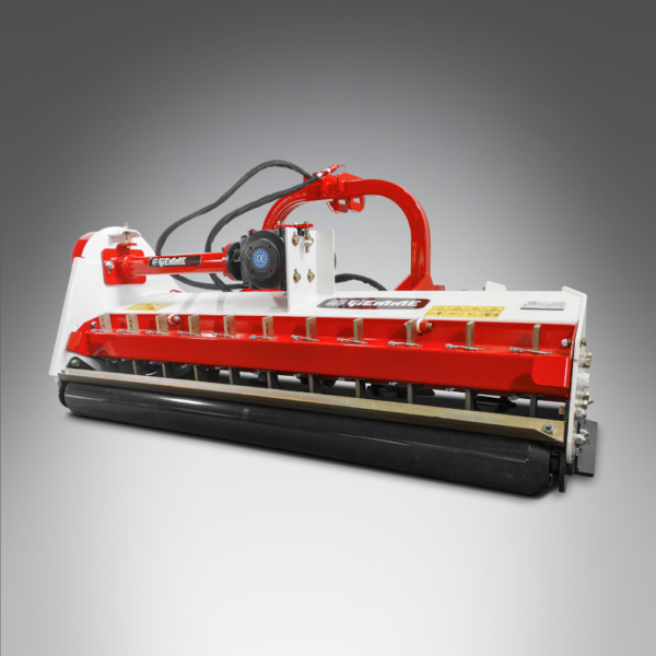 Le broyeur à déport hydraulique GIEMME MACHINERY modèle MFZ 150 est une machine semi-professionnelle et polyvalente, adaptée à la gestion des espaces verts, des branches et des déchets d’élagage de taille moyenne jusqu’à 5 cm. Ce broyeur peut être combiné avec des tracteurs de puissance variable de 40 à 70 ch. Son grand mouvement hydraulique de l’attelage à 3 points facilite sa fonctionnalité, ainsi qu’un râteau arrière à dents réglables en hauteur, dont la fonction est d’améliorer la collecte du matériau à broyer, en le dirigeant vers le système de broyage. Ces spécificités rendent le broyeur MFZ facile à manipuler et fiable à utiliser, notamment dans les oliveraies, les vignes, les vergers et partout où les espaces nécessitent une grande polyvalence des équipements d’entretien. Le hayon, situé sur la partie arrière, peut être ouvert et il est possible de régler son ouverture afin de pouvoir gérer facilement les opérations de nettoyage et d’entretien. Le puissant rouleau arrière, réglable en hauteur, est équipé d’une barre racleuse de boue.
