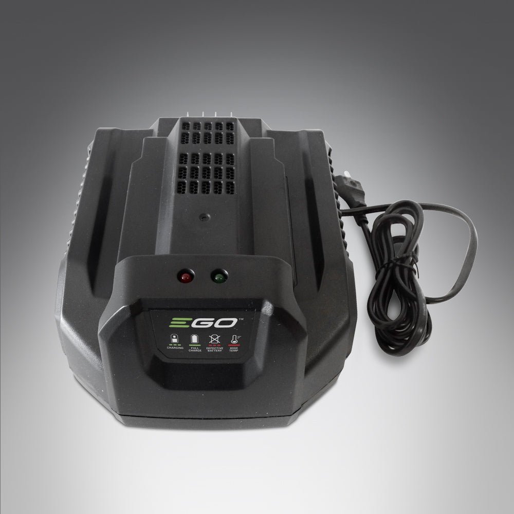 Le chargeur standard EGO CH 2100E dispose d’indicateurs de charge et permet de recharger toutes les batteries Ego. Il dispose d’un système de refroidissement ventilé pour éviter la surchauffe pendant le chargement de la batterie soit de la batterie que du chargeur.